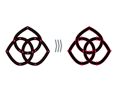 - 重なり具合が複雑で合体するとデザインが崩れる